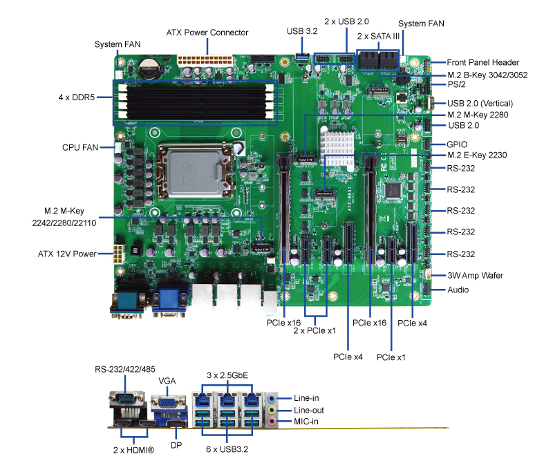 CPU | Intel® LGA1851 Socket, ProcessorArrow Lake-S (MAX. TDP 125W) |