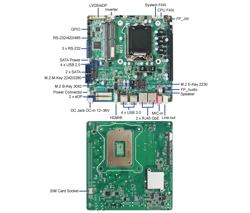 | CPU | Intel® LGA1151 8/9th Gen Socket Processor (Formerly Coffee Lake-S, TDP 65W) For additional compatible CPUs, please contact regional sales |